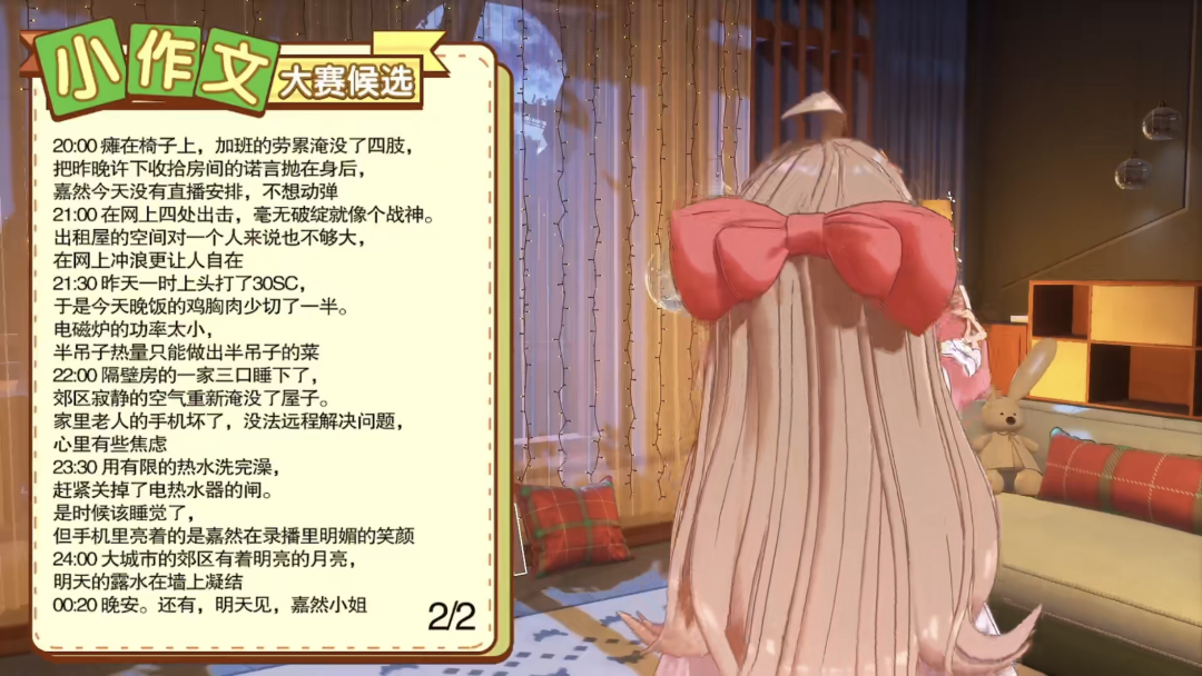 许多A-SOUL粉丝最近会传播“嘉然落泪”的视频:在成员嘉然早期的直播中,有感于一篇粉丝分享社畜生活的小作文,嘉然因为数字形象无法落泪,就以转过身的方式表达情绪,回过头来却仍然是一个带着甜美微笑的“皮套”。