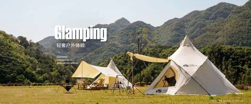 随着时间发展,Glamping的概念开始在日本等国外“出圈”,Glamping是Glamorous + Camping的合成词,直译是“迷人的露营”,后经口口相传被叫作"精致露营"。上海是国内精致露营的发源地之一,一众以“领包入住”、“野外奢享”为概念的精致露营出现在小红书、抖音等社交媒体上,开始逐渐引领潮流。