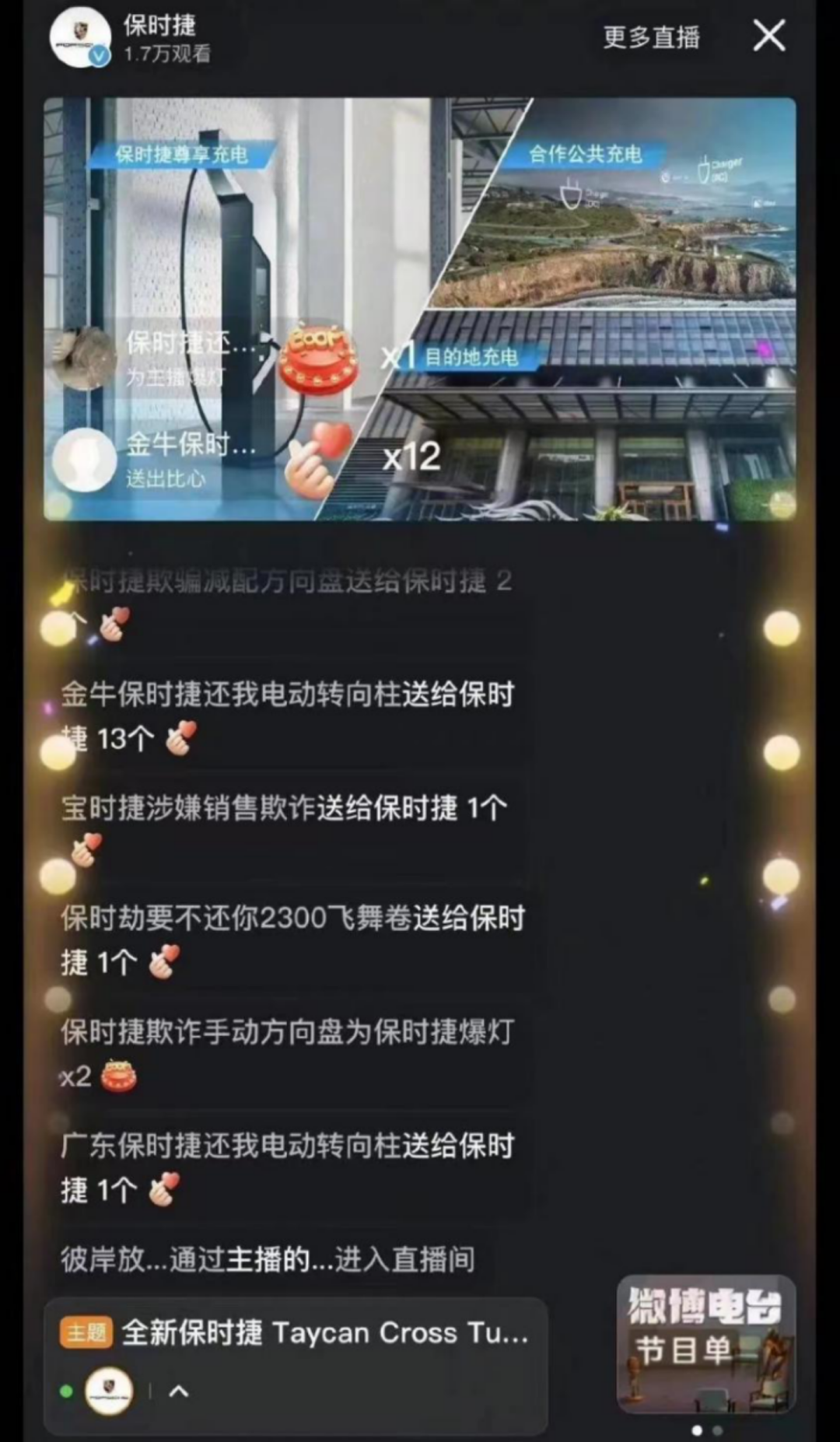 日前,保时捷Taycan家族的首款纯电动车发布会以直播形式进行,但直播间却成为了车主的维权地。大量车主在评论区刷屏:控诉订购车型遭保时捷无故减配。