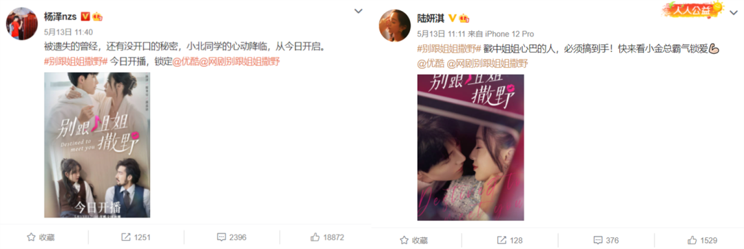 事实上,对于大众来说,《别跟姐姐撒野》的女主陆妍淇可能还更脸熟些。她2015年入行,出演过《知否》《清平乐》等一系列卫视大剧,以及年初热剧《猎罪图鉴》。不过剧集开播当天,两人前后脚发微博宣传,杨泽的数据是她的十倍。