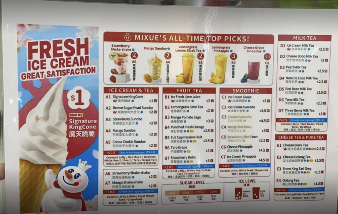 ??蜜雪冰城的新加坡菜单 受访者供图