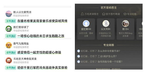 而从当前咻咻星球的内容来看,相对于其他社区,订阅服务以及为厂商和玩家提供交流桥梁的功能在它身上并未体现出来。与其他游戏商店中官方会推送资料以及关注玩家的评论不同,咻咻星球似乎试图建立一个玩家主导和管理的“无官方”社区。由玩家作为问答、攻略的提供者,增强社区的社交属性,且通过安利功能有意培养玩家成为“游戏推荐官”,来调动玩家的参与积极性。