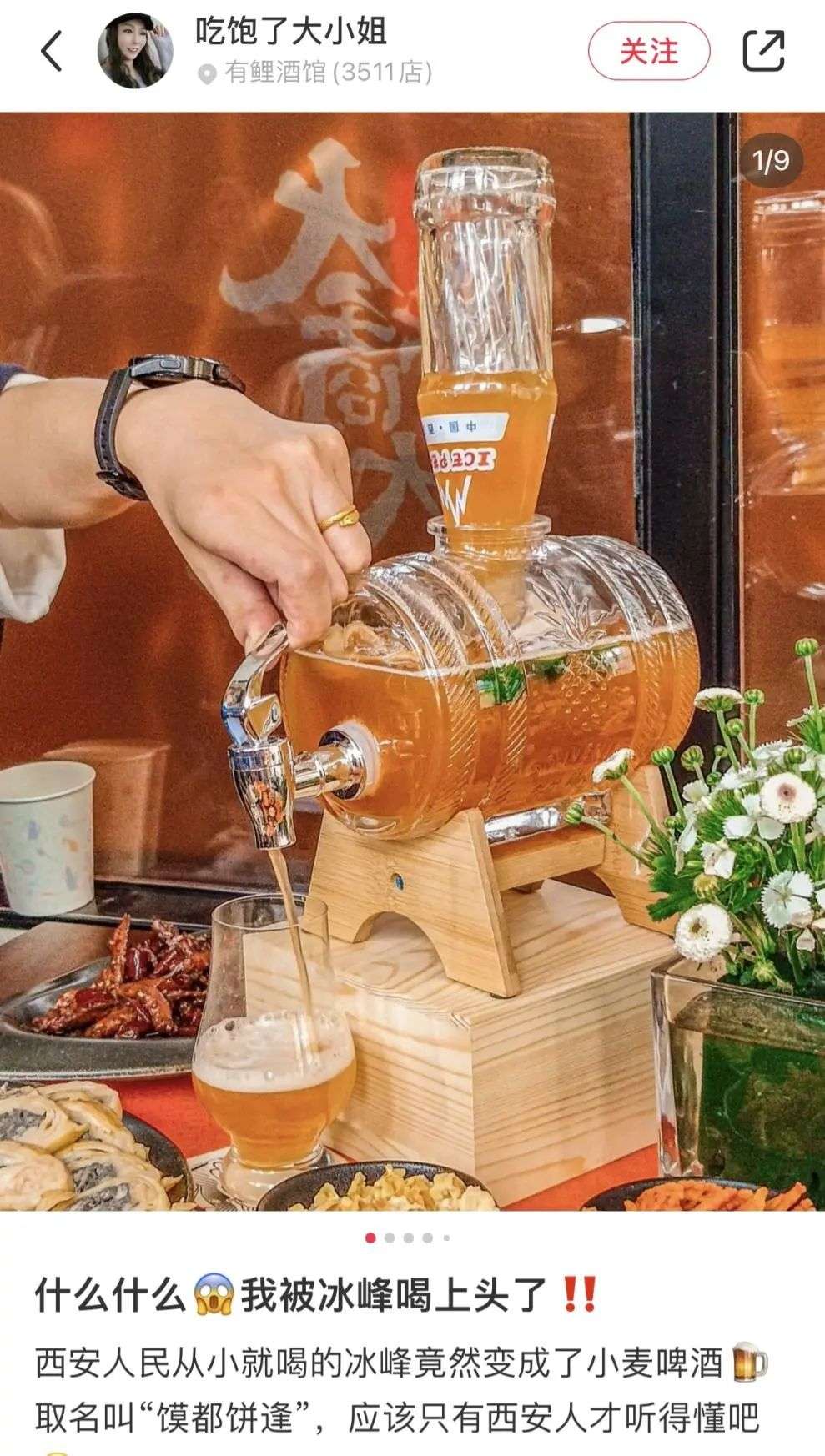 在社交媒体平台上,冰峰被塑造为到访陕西必须打卡的饮料品牌,"这味儿很西安"和"从小就喝它"的情怀牌也被写进了招股书中。在陕西当地,也有不少商家看到其网红属性,自发使用冰峰汽水进行"二创",这也让它有机会通过精酿啤酒和鸡尾酒等产品进入酒馆等场景。