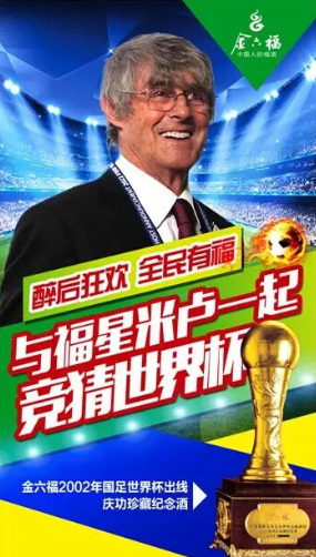 于是,后面的情节大家都知道了,金六福广告在央视推出,米卢穿着唐装,面带微笑地说“中国人的福酒,金六福”。接下来很长一段时间,金六福的广告投放量都是白酒类全国第一。这些投入让金六福趁国足打进世界杯的东风而迅速走红,销量高峰期一天能发出57个卡车车皮。