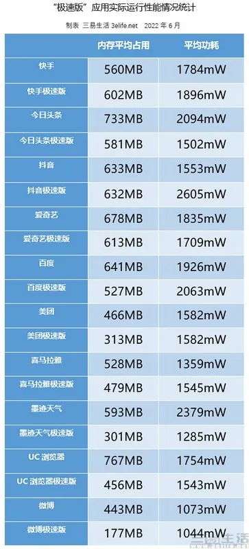 但是这次我们毕竟测试了10对应用,其中真正做到“极速版”比原版更省内存、更省电的,其实只有4对而已。换而言之,剩下的大部分应用的“极速版”要么与原版的硬件资源占用情况大差不差,要么甚至是“极速版”比原版(比如快手、抖音)还更耗电、会占用更多的内存。