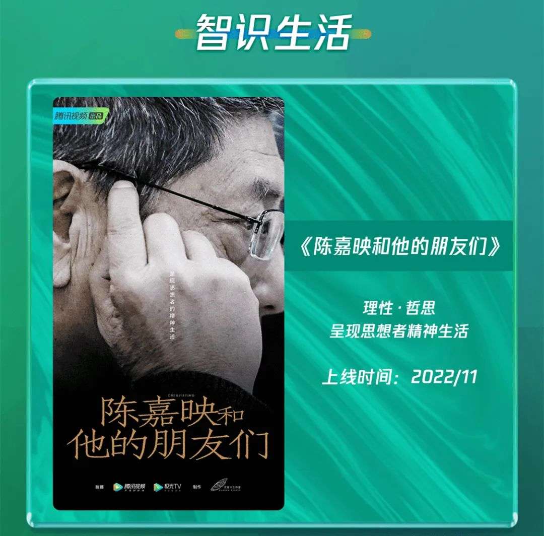 从腾讯视频最近发布的纪录片片单来看,除了以往已经形成品牌的美食类、历史类纪录片,此次新增了“智识生活”类纪录片,而思想纪实类内容此前往往被认为是优酷的品牌内容。