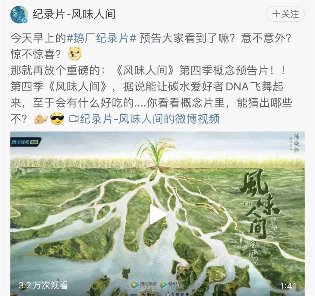 虽然这种影响力可以说是独一份的,但对于各平台来说,打造头部IP在纪录片领域也有绝对价值。所以腾讯视频对美食类内容做了“一日之食”的矩阵绑定,爱奇艺则将《神都洛阳》融入“华夏古城宇宙”的整体开发以带动热度。