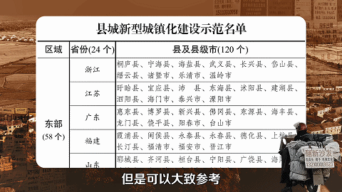 支持力度最大的,就是“大城市周边县城”。更早时候其实还有个概念叫卫星城。 这些“大城市周边县城”具体指哪些,目前还没有明确的名单,但是可以大致参考2020年的发改委划定的120个新型城镇化建设示范县城,比如位于珠三角的惠东、博罗县,长三角的桐庐、宁海,京津冀地区的正定县等等。