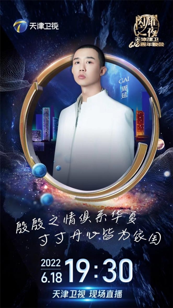 6月18日,种梦音乐(D.M.G)艺人GAI周延登陆天津卫视《闪耀之夜-天津建卫618周年晚会》,演唱歌曲《莲花》《华夏》,完美诠释传统与流行碰撞的当代节奏。晚会集结GAI周延、VaVa毛衍七、胡彦斌、李宇春、面孔乐队、唐汉霄、汪苏泷、王铮亮、萧敬腾、杨坤、张北北、张碧晨、张萌、张远、赵让、周深众多国内顶尖唱将歌手,以“爱国诚信、务实创新、开放包容”为主题内核,围绕家乡情怀、天津特色,激发受众对国风文化的热爱,让传统文化绽放璀璨新光,共同迎接天津建卫618周年。