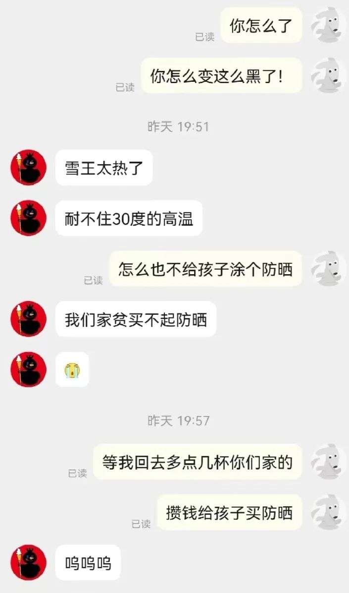 有网友还调侃,“蜜雪冰城的总部在郑州,郑州这两天40℃的天气,估计雪王也顶不住所以给晒黑了。”