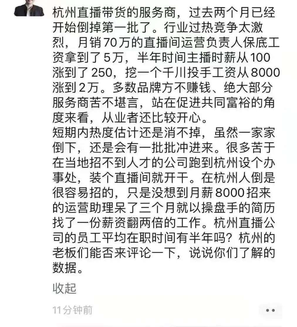 去年,不少业内人士还吐槽带货主播薪资虚高,认为这是带货机构倒闭的“罪魁祸首”之一。