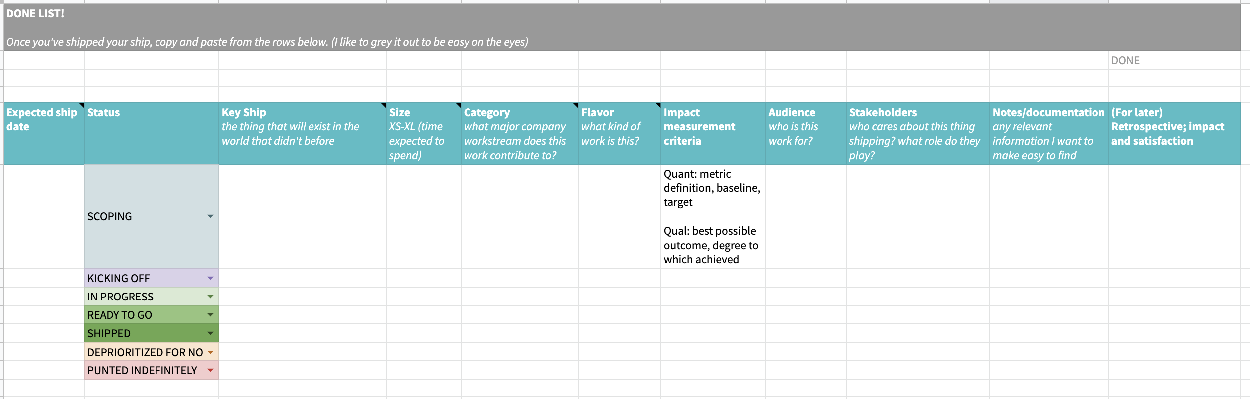 这个文档也可以跟我的上司或利益相关者共享,让他们不仅能了解我正在完成哪些任务,还能够确保大家都对这些优先事项保持着一致共识。