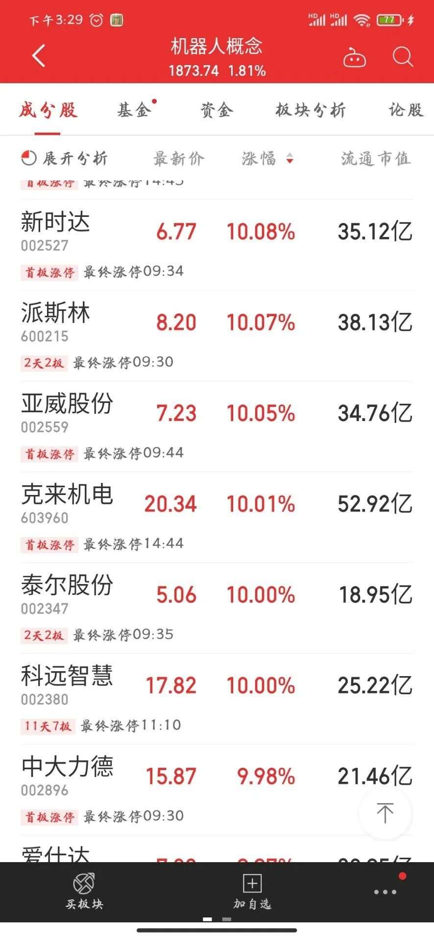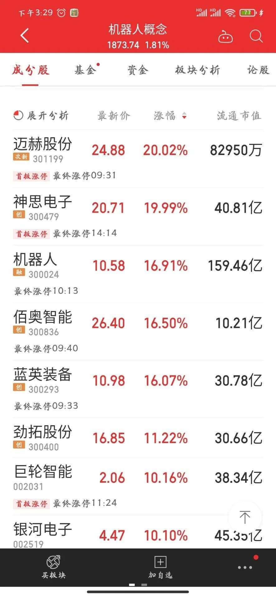 部分机器人概念股及其6月21日股价表现。图片来源:同花顺截图