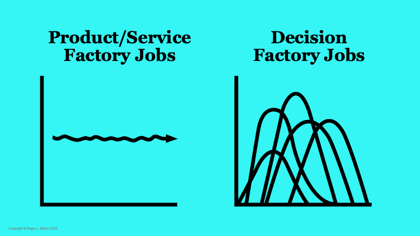 这就引出了一个问题:那些坐在写字楼里的人是干什么的?他们既不生产产品,也不向客户提供服务。相反,他们制造的是决策。决策是他们的产出——决定该研究什么、怎么组织销售、在营销上花费多少、与谁合作、到哪里扩张。管理基础设施最好的比喻是一座庞大而昂贵的决策工厂。