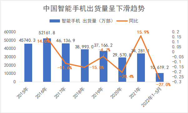 2022年以来,国内整体电子产品行业处于低迷期,国内智能手机市场的出货量已经连续5个月出现同比下滑,市场表现疲软。