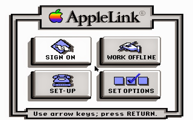 他们的底气源于 AppleLink 项目的前身 Quantum Link,早在 1985 年就赢得了不少 Commodore 64 用户的赏识。随着图形界面的引入,更是吸引了当时许多主流终端(例如 Tandy 个人电脑)用户的关注。