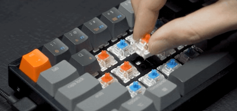 常规机械键盘的按键轴体是和电路板通过锡点焊接的,拆卸更换需要重焊接,比较麻烦。