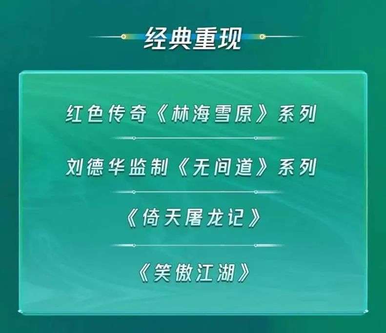 这份片单共分为了冒险动作、爆笑喜剧、经典重现、东方奇幻、创新赛道五大单元。其中冒险动作、爆笑喜剧、东方奇幻都是网络电影主流类型赛道,改编自经典项目的经典重现单元则是首次出现。