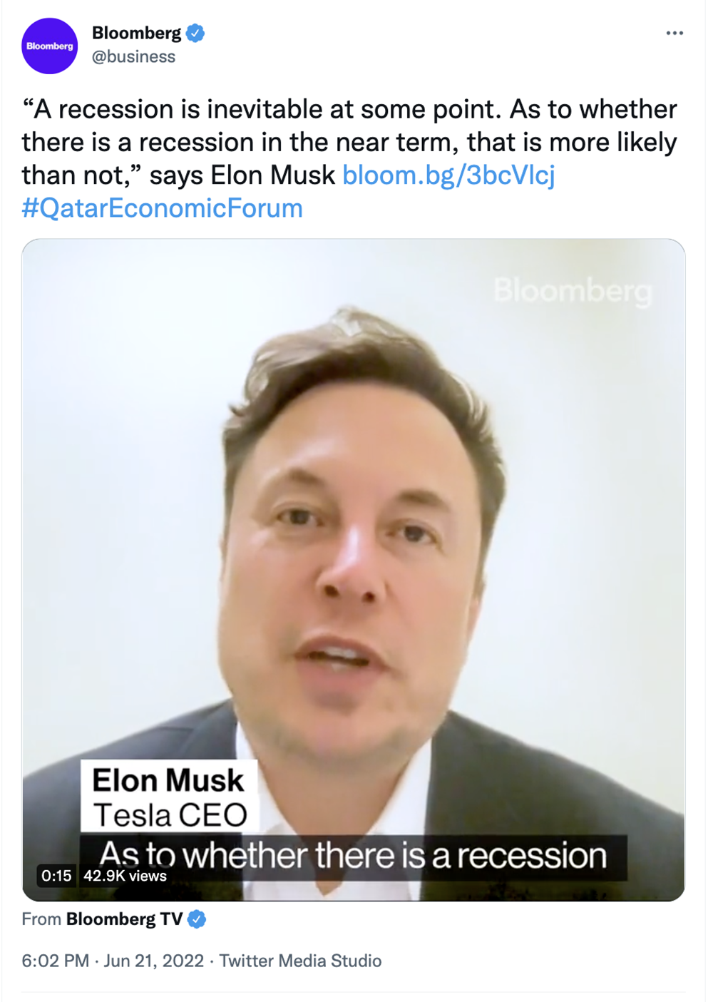 不过,马斯克也不得不在卡塔尔经济论坛上承认,“衰退在某些时候是不可避免的。至于短期内是否会出现衰退,这很有可能。”