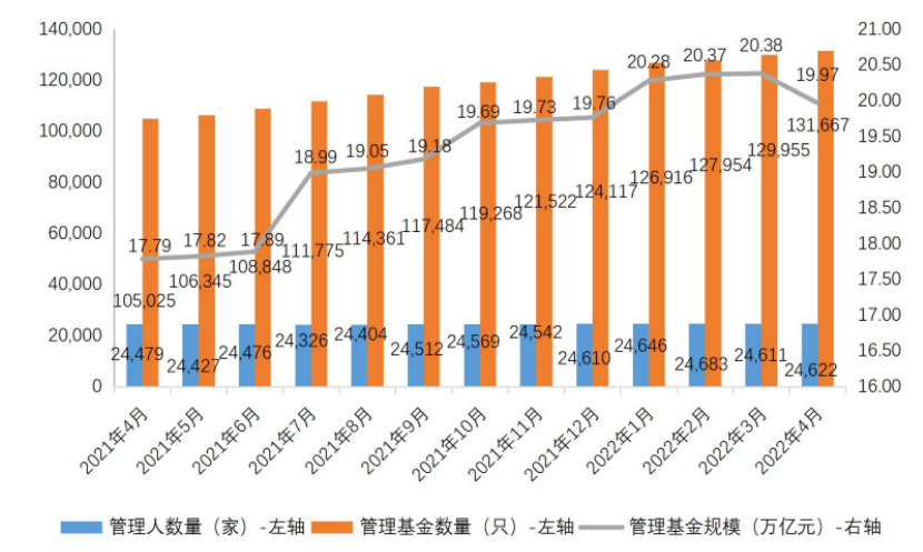 本文来自微信公众号“资本邦”(ID:chinaipo),作者:资本邦,36氪经授权发布。原标题:《截至2022年4月末,存续私募基金规模为20万亿元》