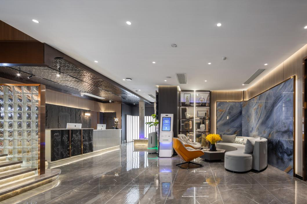 【合肥遇见唯诺酒店的自助入住机与送餐机器人】