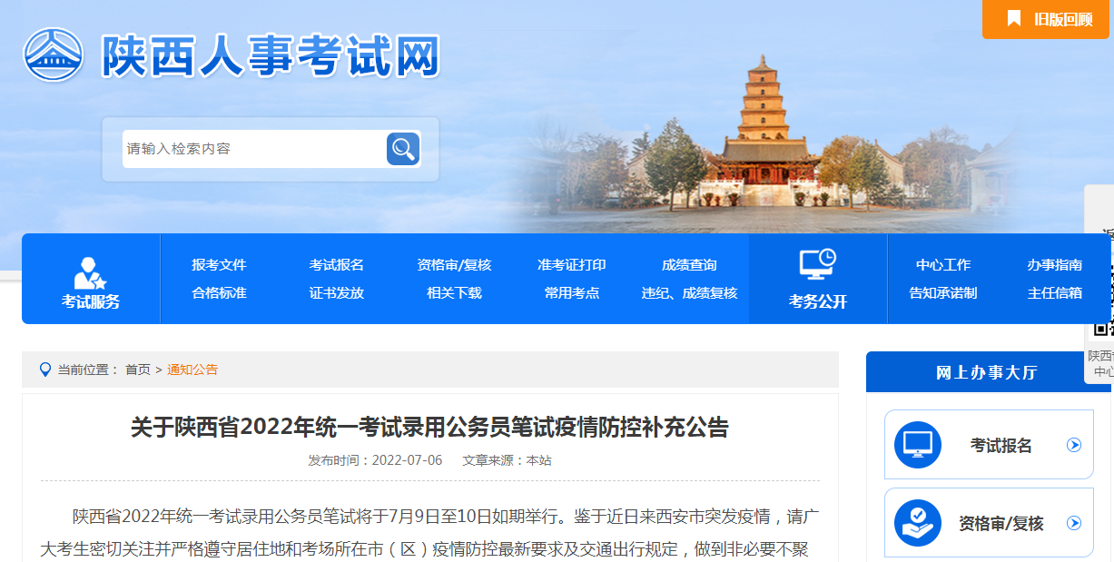笔试疫情防控措施其他要求按照2022年6月21日发布的《陕西省2022年统一考试录用公务员笔试疫情防控告知书》执行。