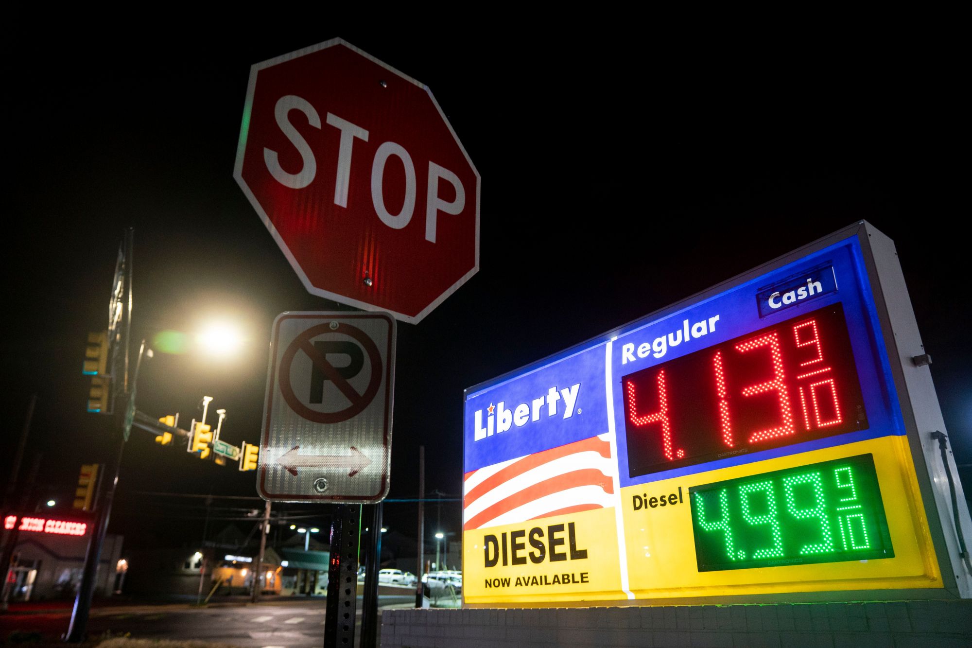 这是3月31日在美国弗吉尼亚州阿灵顿拍摄的一处加油站的油价显示牌。(新华社记者刘杰摄)