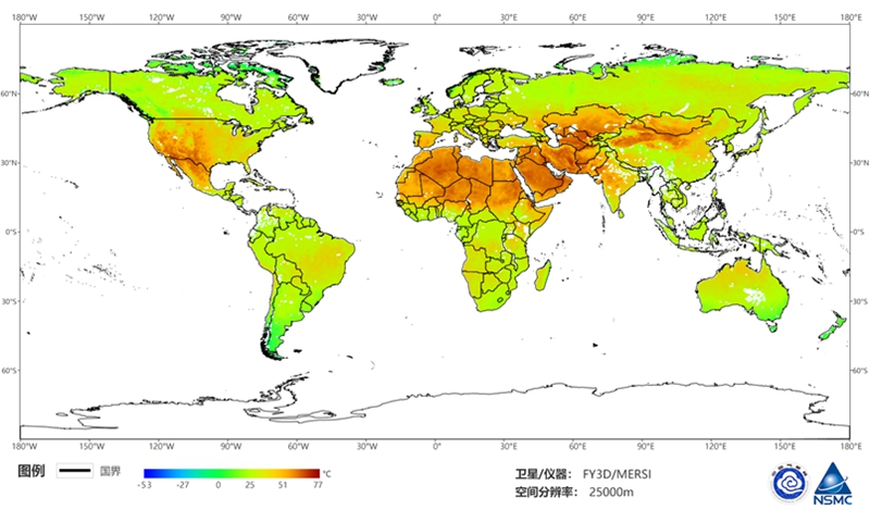 风云三号D星全球最高地表温度监测图 来源:国家卫星气象中心