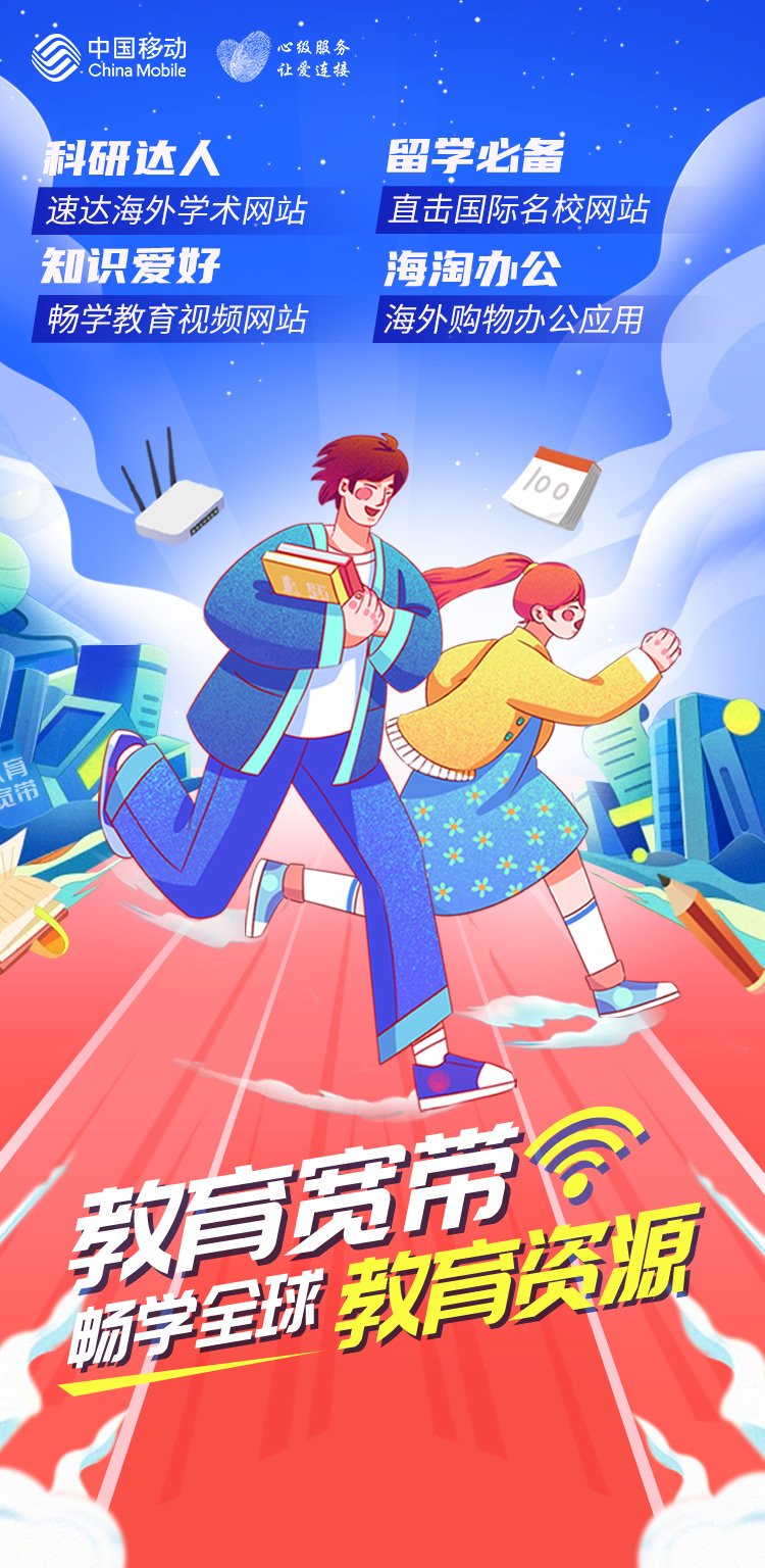 作为通信行业的领跑者,中国移动聚焦远程教育人群的网络需求,面向有访问海外学习网站需求、慕课需求的用户,推出的“场景化宽带·教育宽带”产品。