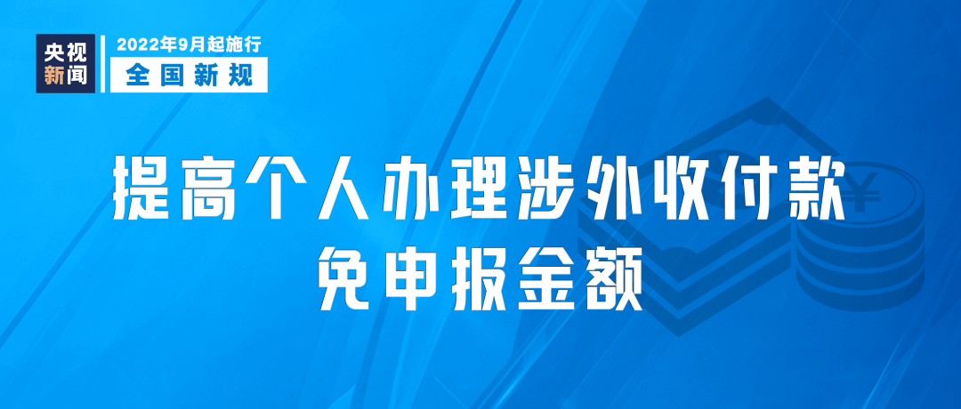 《通过银行进行国际收支统计申报业务实施细则》9月1日起施行,对单笔交易金额在等值1万美元以下(含1万美元)的居民个人涉外收付款,实行限额下免申报。
