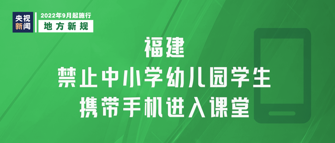 《福建省禁止中小学幼儿园学生携带手机进入课堂的规定》9月1日起施行,禁止中小学幼儿园学生携带手机,包括电话手表进入课堂。