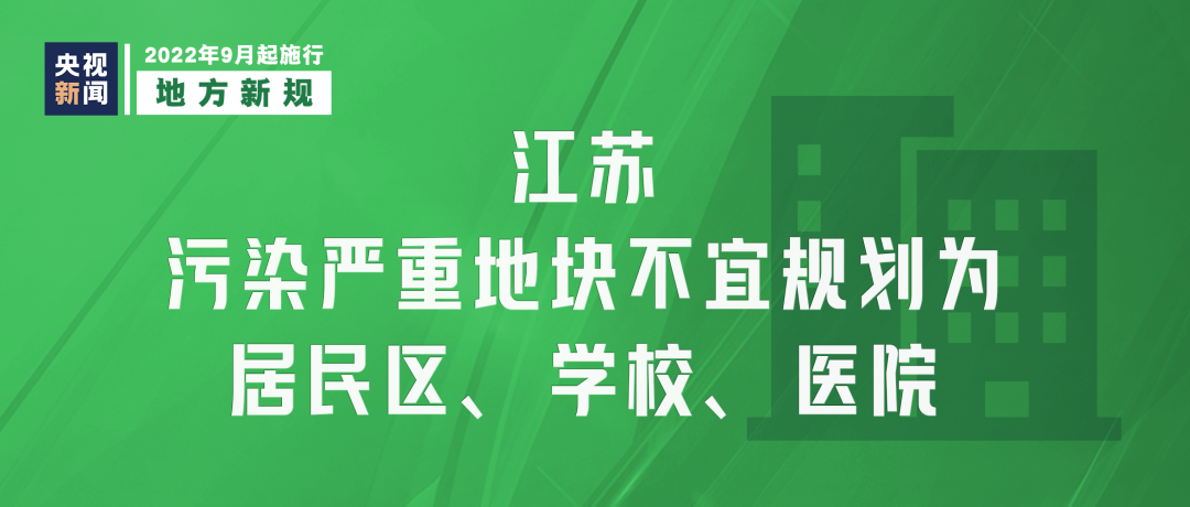 《江苏省土壤污染防治条例》9月起施行,明确12个土壤污染防治重点行业中的污染严重地块,不宜规划为居民区、学校、医院等用地,可用于拓展生态空间。