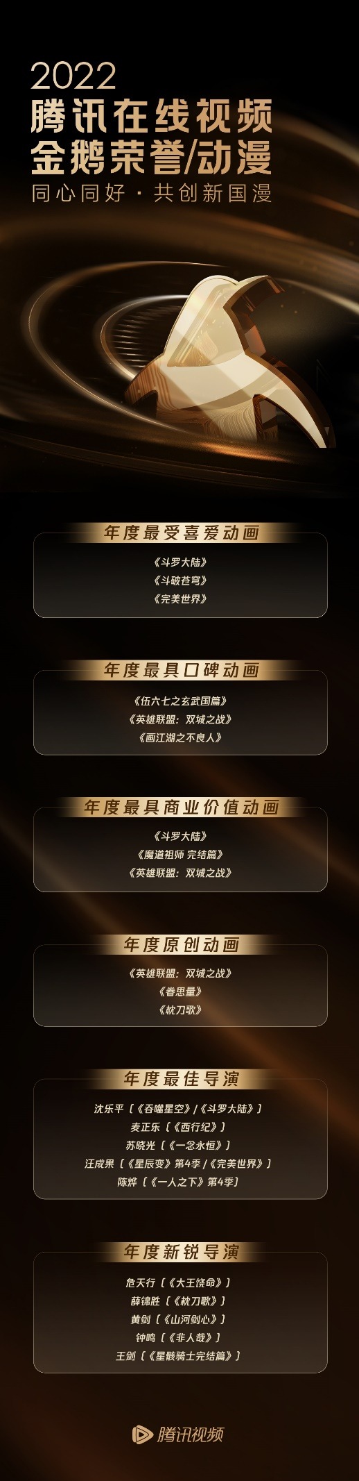 附:“2022腾讯在线视频金鹅荣誉/动漫”详细评选结果