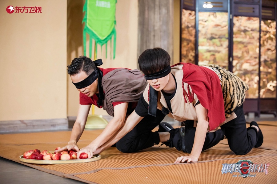 这场比拼的高光时刻,则属于吸取前人经验、配合默契的郭京飞和金靖。他们在游戏开始前就细细约定了不同方向的指挥口令,蒙上双眼的郭京飞更是大展拳脚,听着口令演练了一回出击的方向。果然,两人在游戏中很快达成默契,郭京飞更是多次拦截试图匍匐前行的贾乃亮,“喊哪儿打哪儿”的战果令人惊叹。在最终清点“仙桃”数量时,怎样的收获让金靖忍不住尖叫?郭京飞又会如何总结两人的配合?