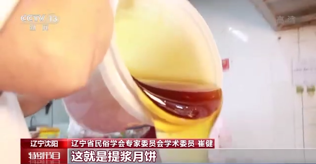 辽宁省民俗学会专家委员会学术委员 崔健:用蛋清作为一道工序,把杂质去掉提纯,这就是提浆月饼,是老式月饼的源头。自来红在古籍的记载当中属于翻毛月饼的一种,为什么偏要买自来红呢?自来红是用植物油做的,而自来白是用动物油做的,这个用植物油做的用来祭祀就比较方便。