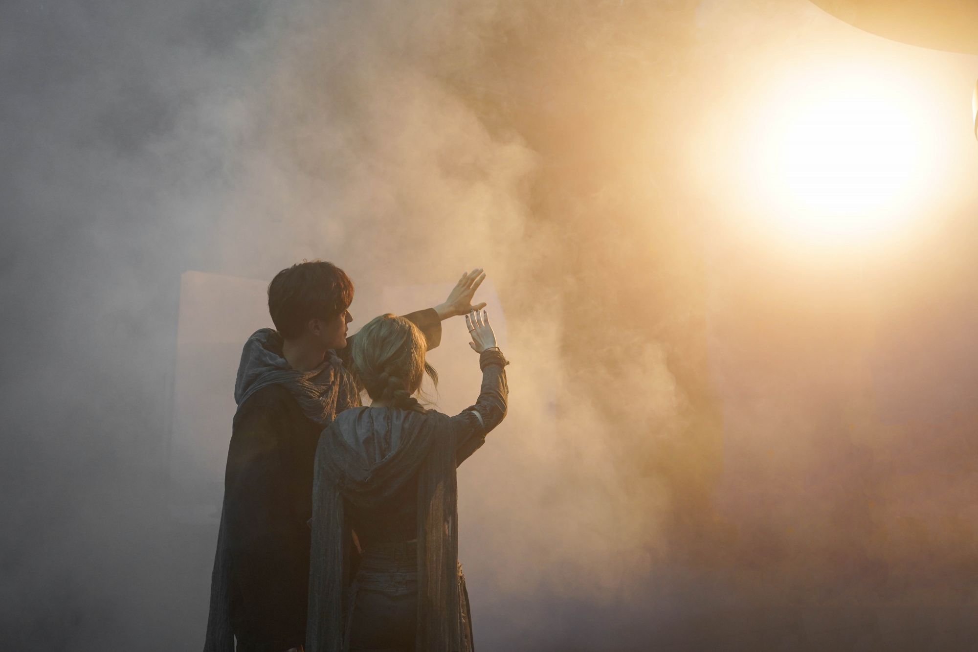 今日发布的MV剧情来到第十三集,随着元宇宙故事的深入发展,在剧情上G.E.M.邓紫棋围绕着对”爱”这一核心概念的多?度阐释也更为开阔,爱凡(孙晨竣饰)在现实里删除了自己在乐土的游戏?色,让他能来到废土的少年与海酒吧,与独自伤神的歌莉雅(G.E.M.邓紫棋饰)重逢。他伸出手给予歌莉雅温暖的爱意,歌莉雅的脸庞又重现了久违的灿烂笑容。二人心中已无惧黑夜的黯淡,牵手漫步在废土世界中每一处熟悉又陌生的街头巷尾。另一边,秋(G.E.M.邓紫棋饰)也受到鼓励,逐渐接纳并正视爱凡与自己的感情,对于二人来说,爱就像夜的尽头出现的一颗星,指引着自己和所爱之人一路向前破茧重生,历尽千帆,归来仍是少年。而在废土中的歌莉雅和爱凡,亦?证着没有爱的地方才是荒漠,只要心中有爱,废土亦能变成“乐土”,重现生机。