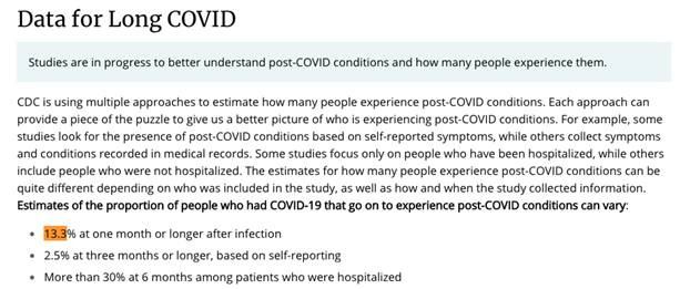 由于美国新冠患者基数过于庞大,大量民众正受到“长新冠”的困扰。美国疾病控制与预防中心数据显示,全美所有新冠患者中,有13.3%的人在感染1个月后仍存在以上症状;有2.5%在感染3个月后仍存在以上症状;而在住院治疗的新冠患者中,有超过30%在感染6个月后仍存在以上症状。
