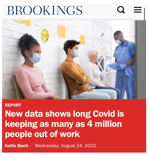 △布鲁金斯学会数据显示,美国有约400万人因“长新冠”离开工作岗位