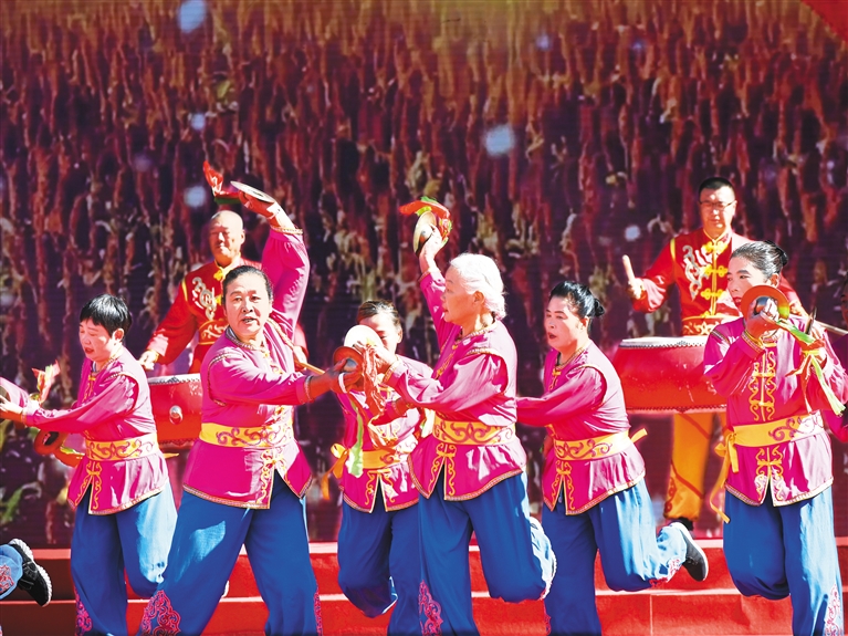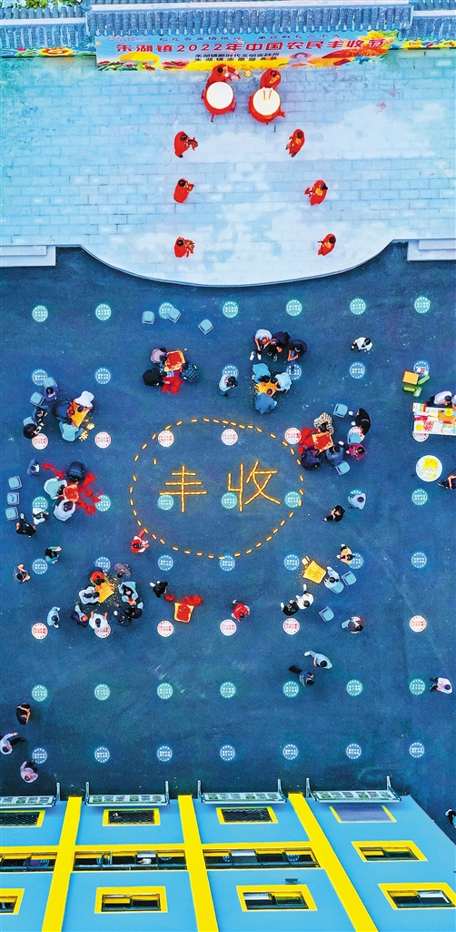 9月23日,2022年中国农民丰收节北京昌平主会场,农民载歌载舞庆丰收。戴军摄(中经视觉)