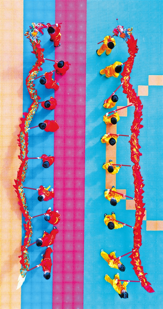 9月22日,浙江省仙居县的孩子们进行舞龙表演,欢度中国农民丰收节。王华斌摄(中经视觉)