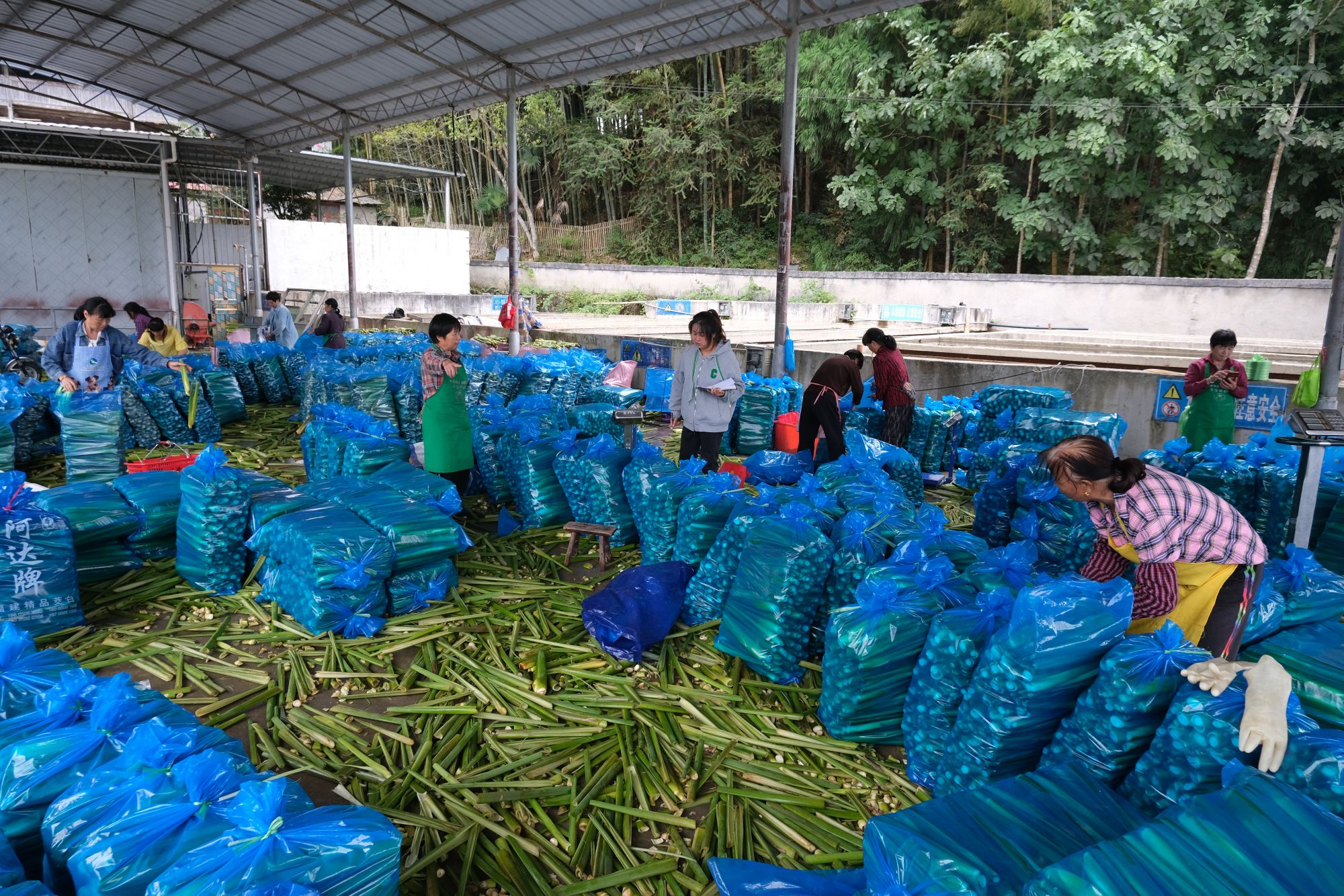 在丽水市景宁畲族自治县大漈乡茶林村,新采的茭白正在被打包装车。新华社记者 郑梦雨 摄