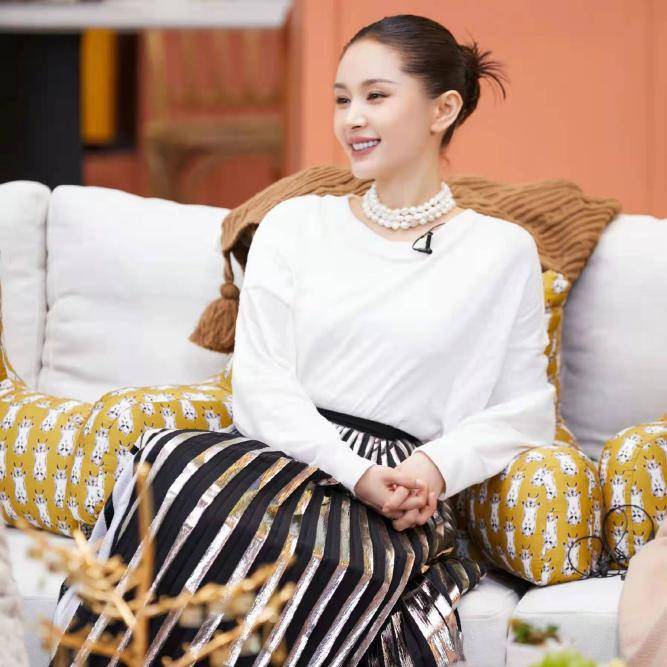 白色长袖是日常生活中必备的一件单品,想要搭配的优雅,下半身选择半身裙子是一种好的选择。最简单的白色慵懒长袖搭配上黑银色褶皱半身裙,脖间以珍珠项链作为点缀,不仅能够很好的修饰肩颈曲线,更凸显出女性的知性优雅。
