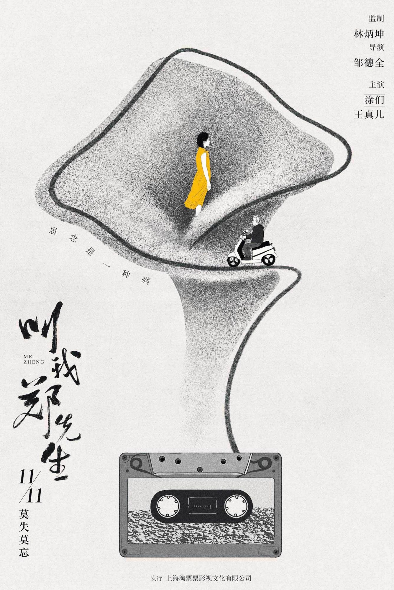 电影中,患有阿尔兹海默症的郑先生(涂们 饰)希望留住对亡妻的记忆踏上环岛之旅,遇到了需要录下环岛路途声音、希望唤起昏迷两年丈夫的阿灰(王真儿 饰),二人旅途中相互疗愈,浪漫且深情。作为阔别银幕许久的小清新公路爱情电影,《叫我郑先生》两轮点映均取得不俗口碑,也让观众在11月11日这个特殊的日子里有了更优质的选择。