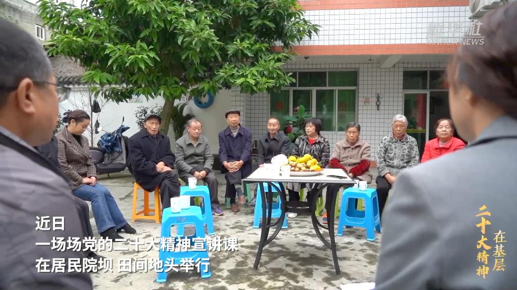 近日,在四川省成都市温江区,一场场党的二十大精神宣讲课在居民院坝、田间地头举行。