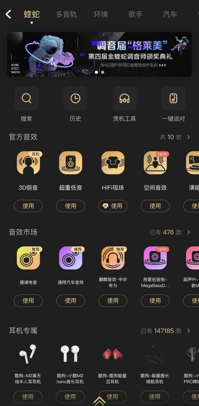 目前,酷狗蝰蛇音效已先后上架汽车音效、5.1全景音效、环境音效、多音轨等超12万款音效,积累多达4.7亿庞大用户量,拥有超1500位调音师入驻,已成为隐藏在酷狗音乐中的宝藏功能。