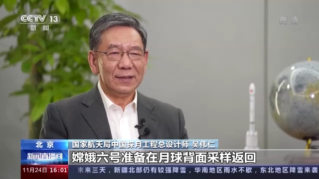 国家航天局中国探月工程总设计师 吴伟仁:嫦娥六号准备在月球背面采样返回,如果成功了,这也是人类第一次。我们都知道我们嫦娥五号在(月球)正面采样返回,拉了1.7公斤(月壤)回来,我们希望在月球背面(嫦娥六号)这次能够采样更多一点。