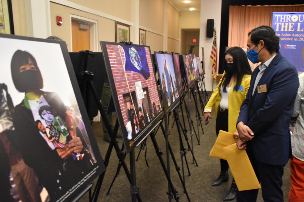 2022年5月21日,在美国加利福尼亚州洛杉矶县阿卡迪亚市,人们参观“镜间:亚裔美国人的2021”摄影展。新华社发(曾慧摄)
