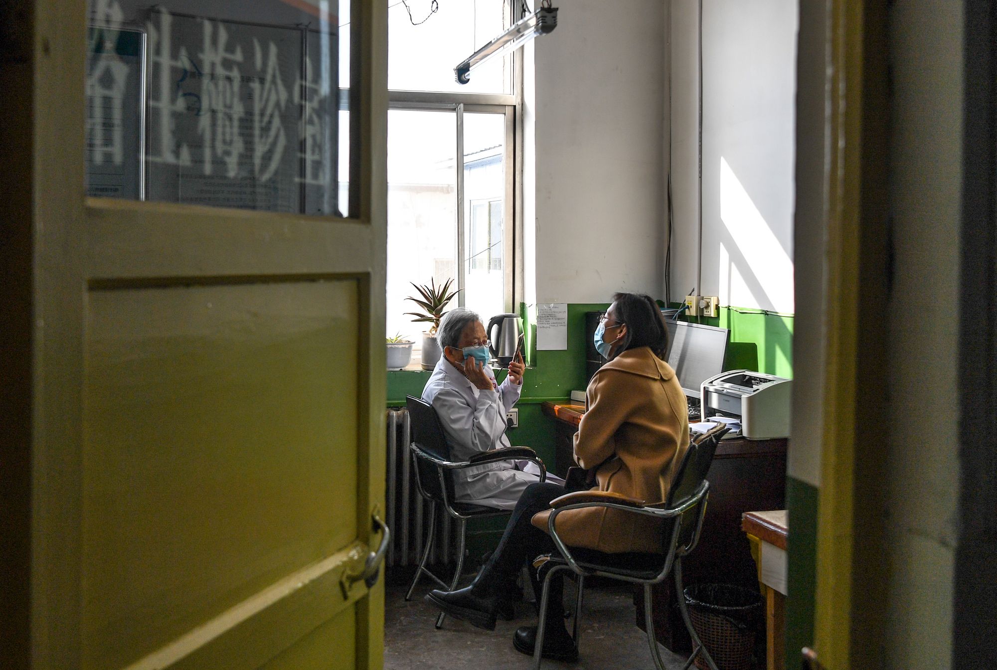 路生梅在佳县人民医院坐诊。新华社记者邹竞一 摄