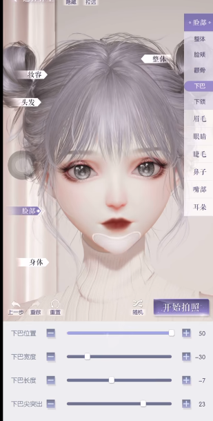精细到什么程度呢?单一个下巴就可以调整位置,宽度,长度以及下巴尖的突出程度,可以说数值稍有变动就成为另一张脸了。