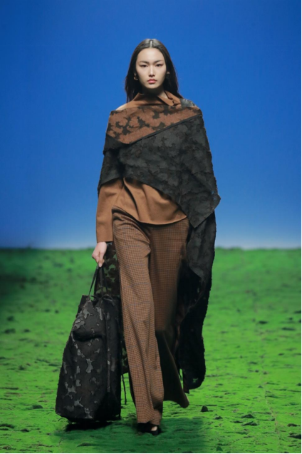 此次系列将东方美学和当代时装相融合,意在衬托刚柔并济的新女性形象,平衡艺术、自然与生活,探索东方内敛的人文精神,吸收与化用东方文化符号,取其形、延其意、最终传其神,让“东方自然观”在人类未来社会发展中焕发新的生命力。